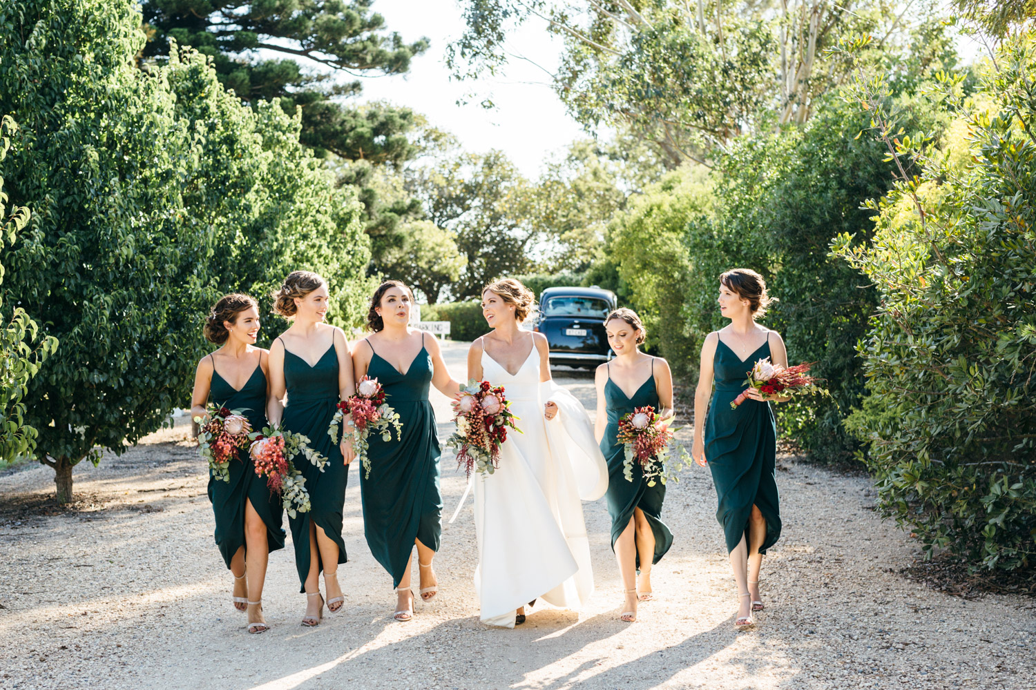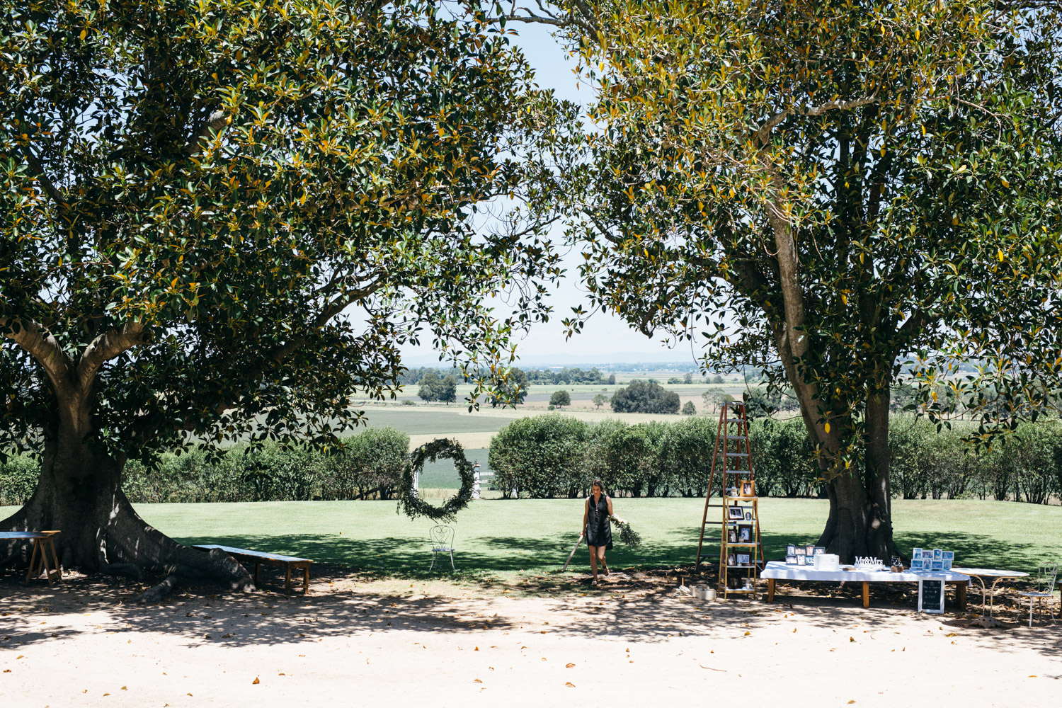 Back at Wallalong; the wind was picking up. After a late change to the ceremony location to shelter from the weather, Emma’s team set up the chairs around the back of the estate. The awesome variety around all sides of the homestead meant that she could almost any side for the ceremony and the backdrop would be lovely. The green ivy wall was a great choice.