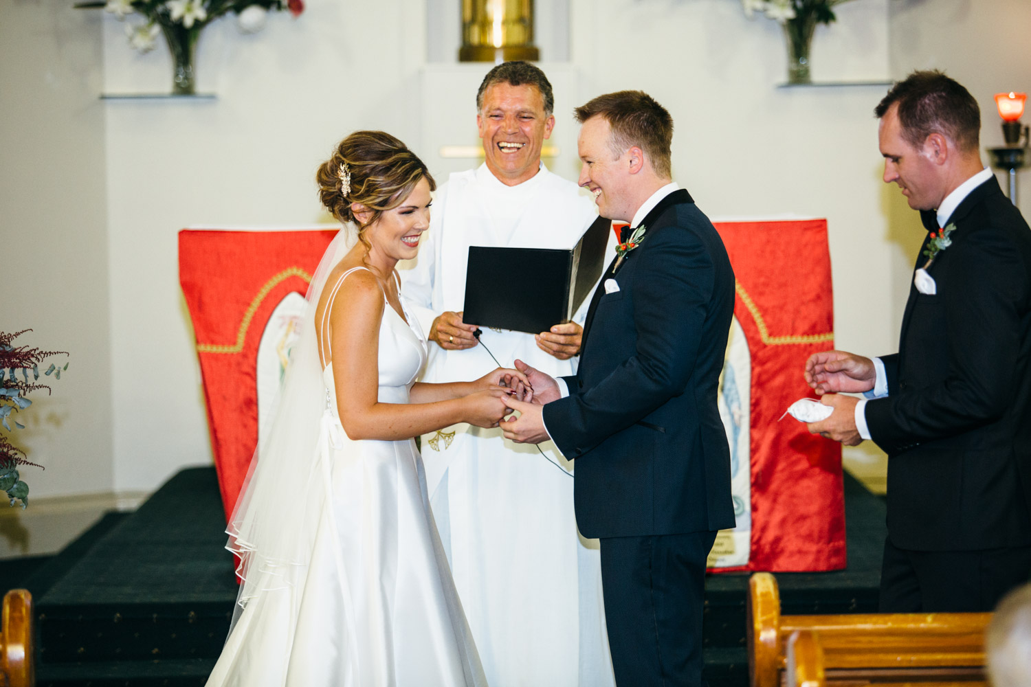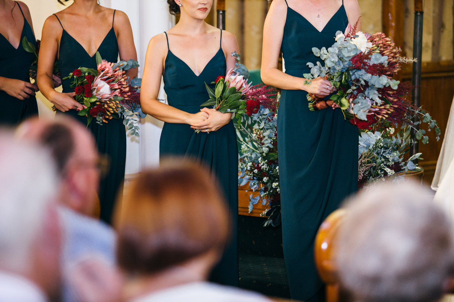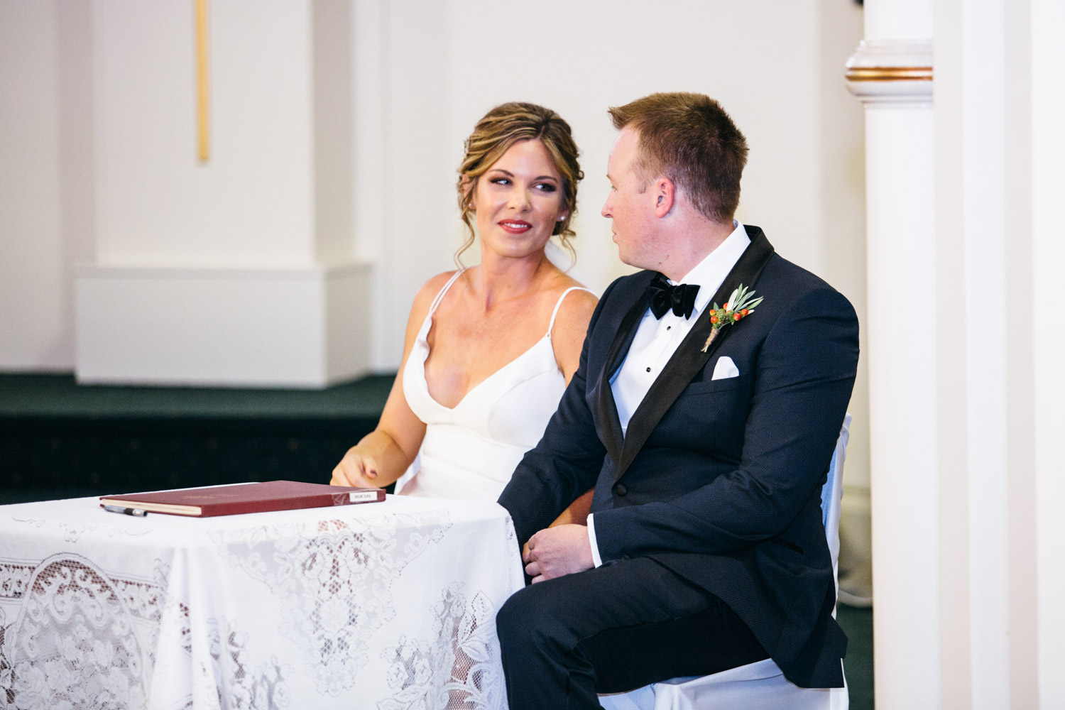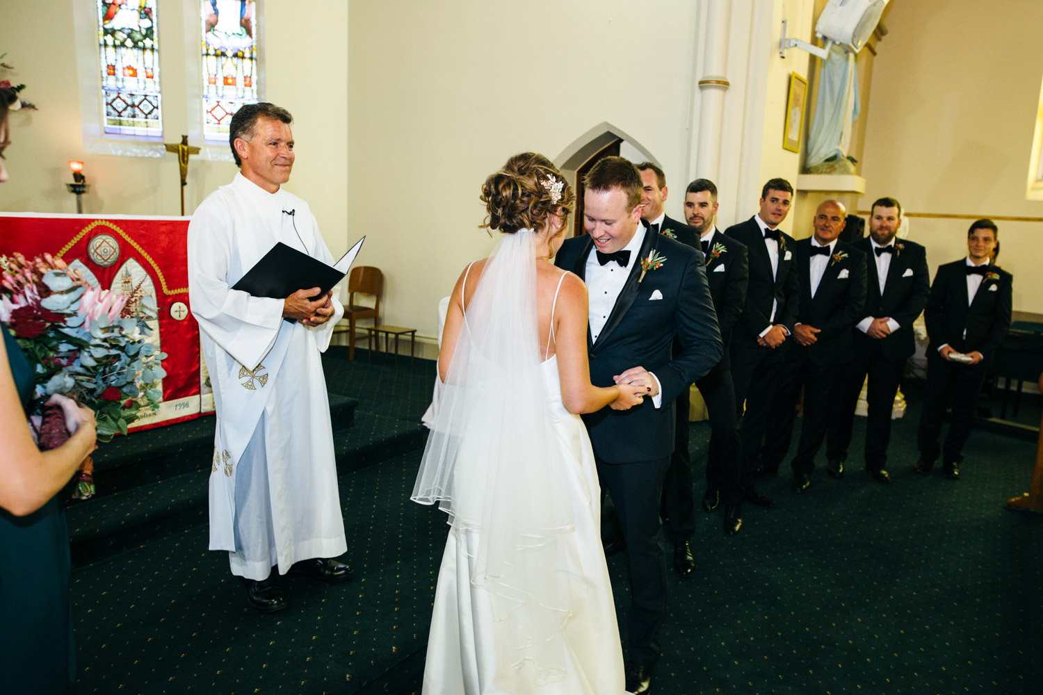 Aimee and JF’s ceremony, held in the Branxton Uniting Chapel in Branxton (around 20 minutes east of Singleton) was lovely. The light inside the chapel was soft and flattering. The memorable thing about their ceremony was that after the celebrant pronounced Aimee and Jacobus to be husband and wife, he didn’t invite JF to kiss his bride. JF, unsure of what to do, simply asked the question, to which their celebrant conceded with a chuckle; “Of course… You may now kiss your bride”. The chapel erupted in laughter as they kissed.