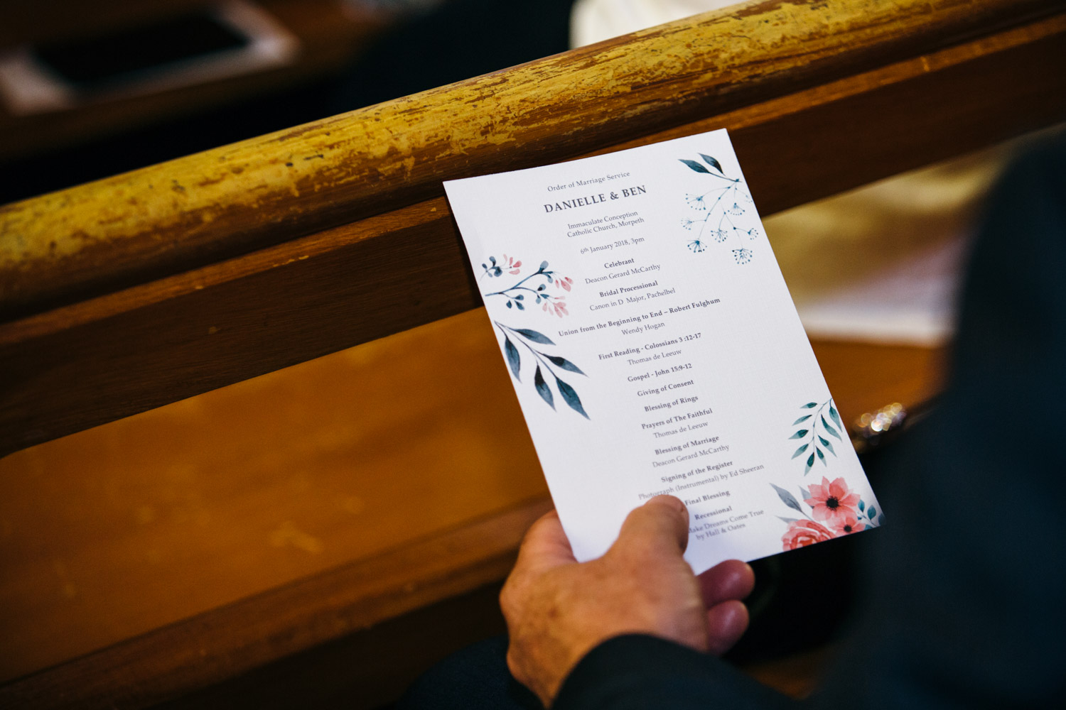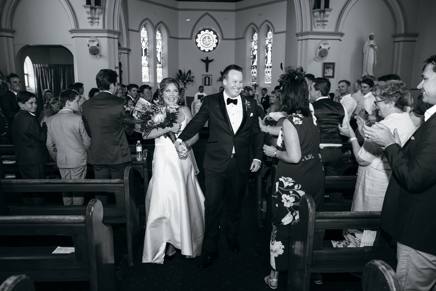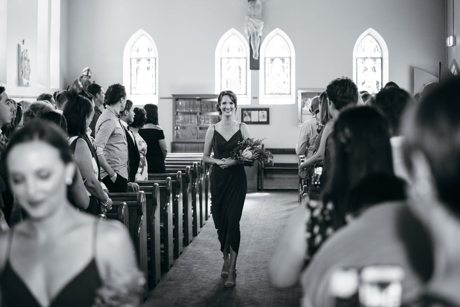 I actually met Aimee and Jacobus (or, JF as he is known), at Aimee’s brother’s wedding (Nathan and Chelsea) around a year earlier. I remember Aimee and JF were the ushers at the entrance to the church; guiding people inside and distributing the program for the church service. Around a year later, Aimee emailed me to ask if I’d be available to photograph her wedding to JF in the Hunter Valley, and so this blog post is about Aimee and JF’s Hunter Valley Wedding in Singleton. Ps, the frame below is Aimee and JF ushering guests at Nathan and Chelsea’s wedding a year earlier.