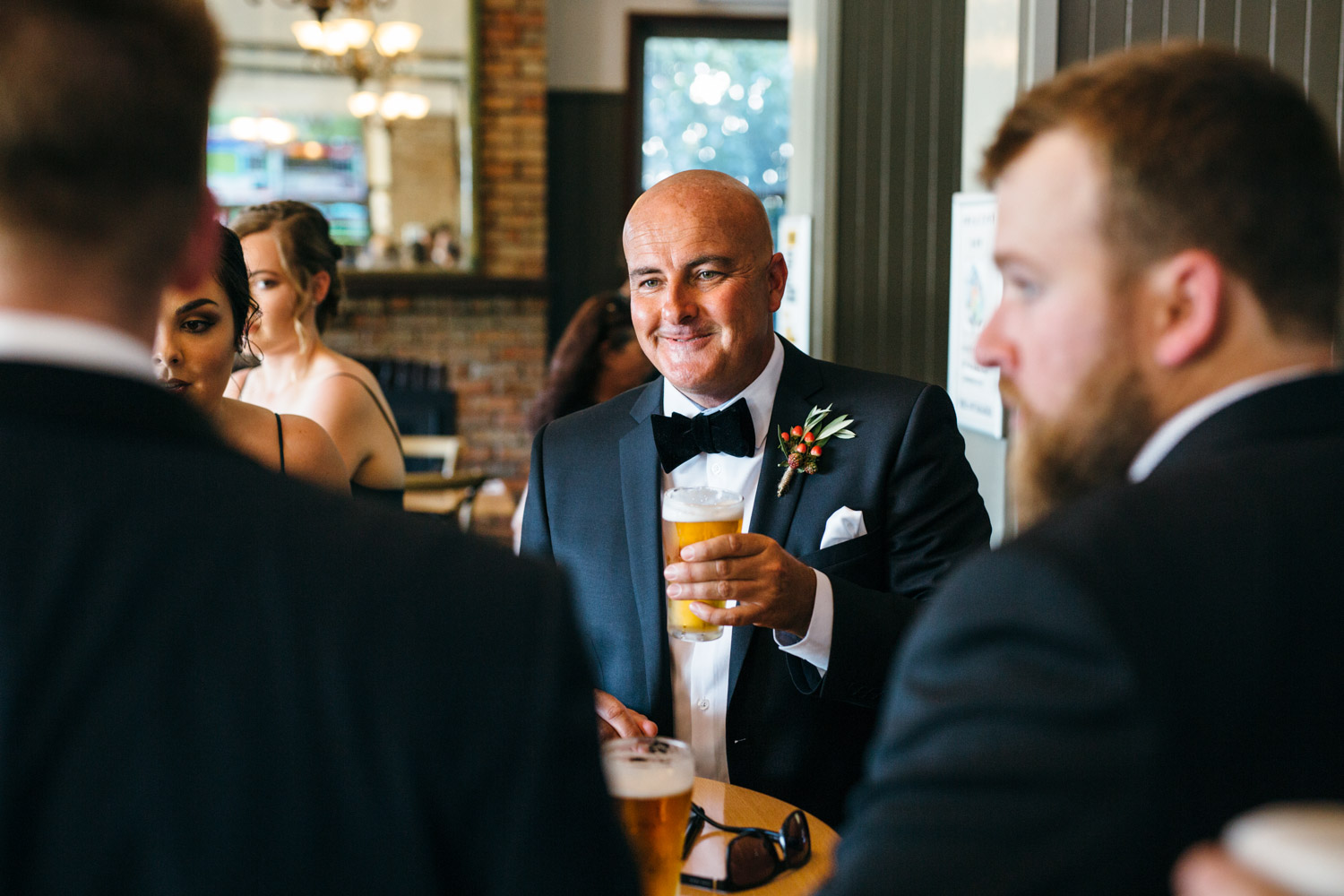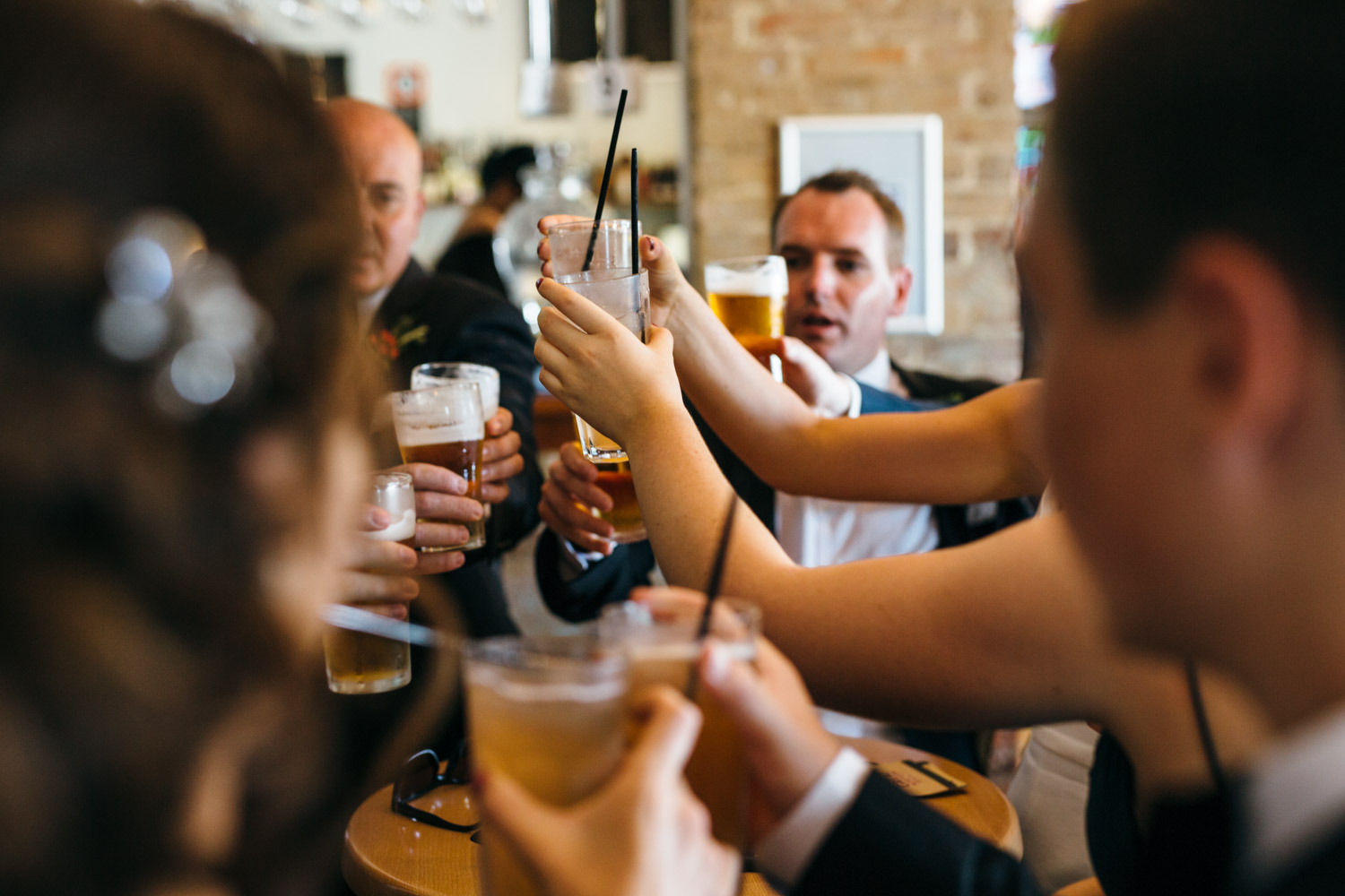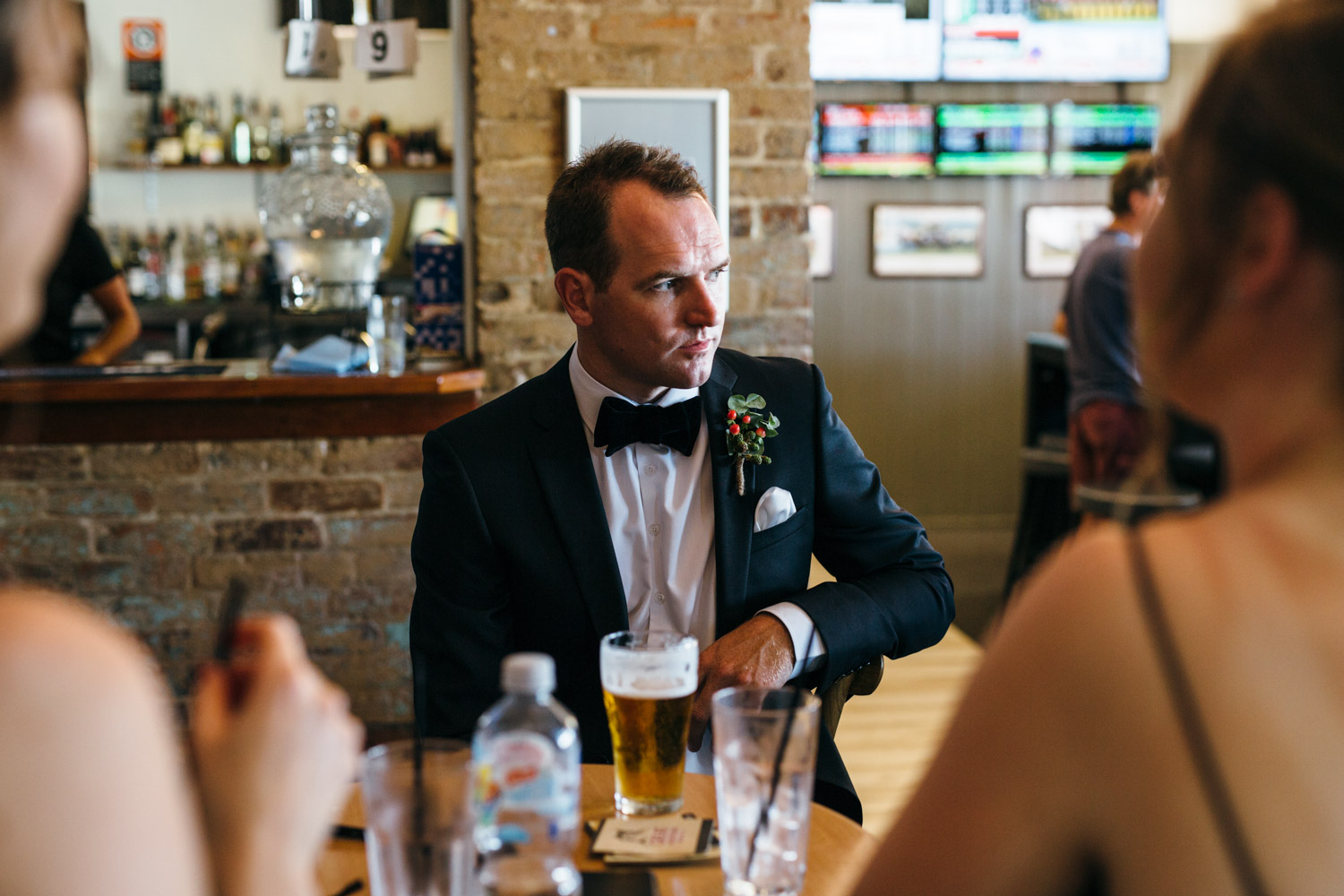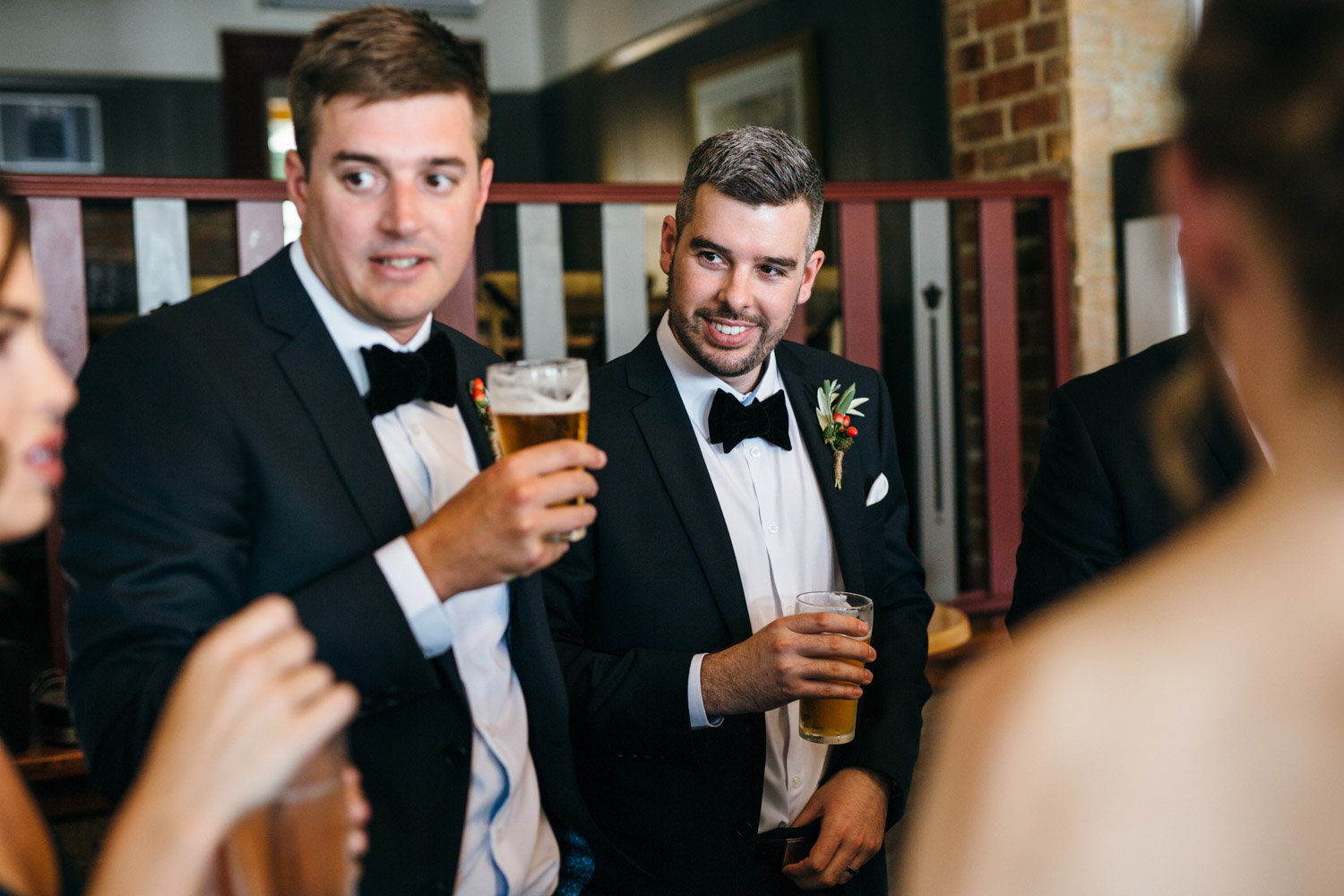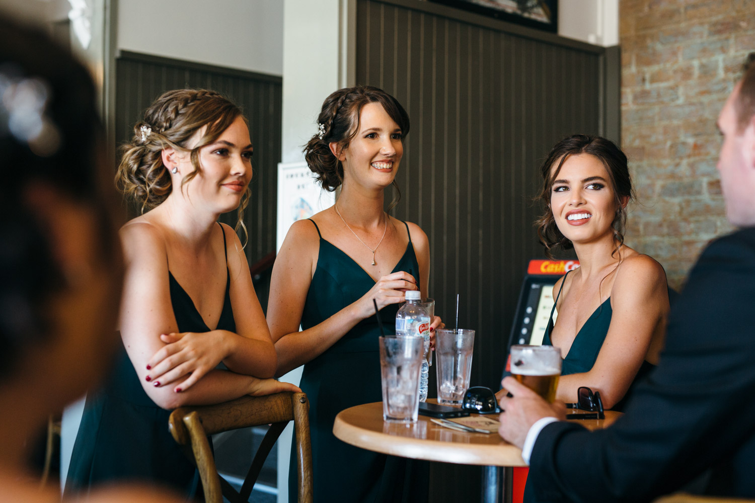 Tom and Bridget’s wedding day started off in Manly, just down the road from Milestone Events. Tom got ready a short stroll from Manly Beach, where we captured some portraits with him and his groomsmen whilst they smashed a few cans of Southern Gold Lager. Bridget and her bridesmaids got ready for the day up at Milestone Events, where they also put in the hard work styling the venue during the morning, before popping champagne (and also a can of Southern Gold).