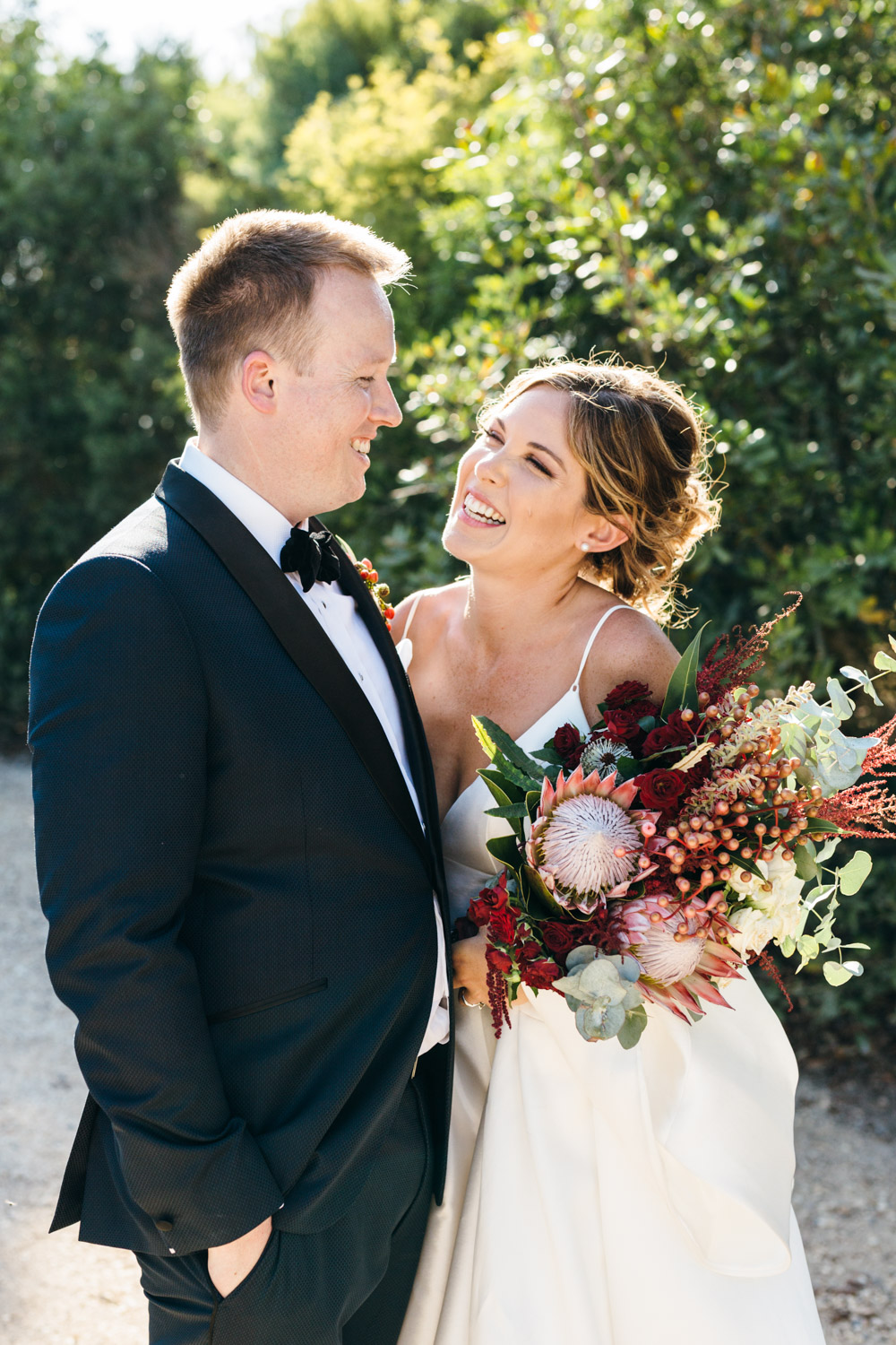 After the ceremony, we didn’t need to venture too far for some Fernhill Estate wedding photos – we roamed around the Manor gardens to capture some portraits. Fernhill Estate is full of photographic variety – including the old sandstone outhouses and cottages, large trees, and a super old rose bush out the back (which was massive!). Honestly, it was difficult to not get carried away in the surrounding locations and instead, focus on a few key areas for these Fernhill Estate wedding photos.